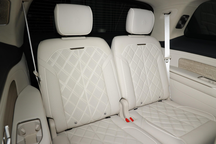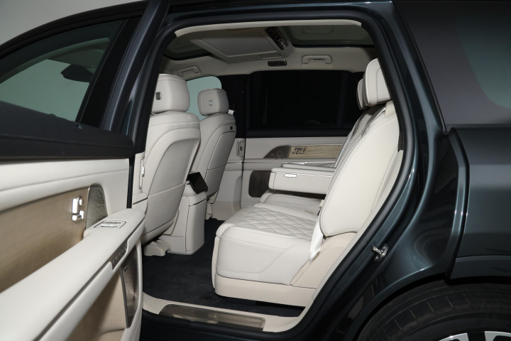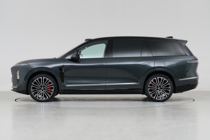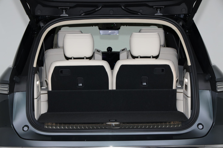 车身侧面得益于5280mm的车身长度配合富有力量的双肩线,营造出优雅修长的视觉效果,后排采用的是隐私玻璃,整车侧窗处于同一平面,配合车门的隐藏水切工艺以及隐藏式门把手,不仅能够降低一定的风阻系数,同时还提升了一定的高级感,六/七座豪华版车型均搭载的是21英寸的轮毂,轮胎尺寸规格为265/45 R21,六座签名版则搭载的是22英寸的轮毂,轮胎尺寸均为265/40 R22。